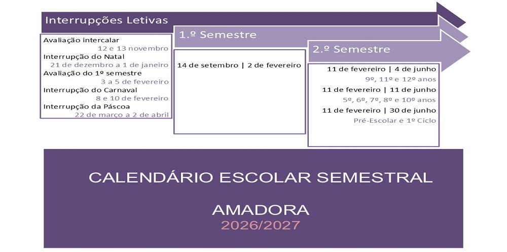 O calendário escolar para o ano letivo 2026/2027 no concelho da Amadora já se encontra aprovado, estabelecendo as principais datas de início e término das atividades letivas, bem como os períodos de interrupção e momentos de avaliação.